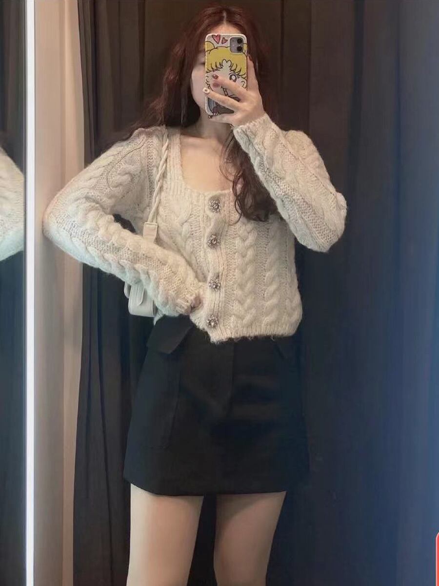 ラインストーンボタンニットカーディガンセーター ジャケット レディース スクウェア アイドル ジャケット ブルゾン Tシャツ 長袖 半袖 デニム パンツ ワンピ キャミ オフショル ティアード ジーンズ スーツ ZARA フォーエバー21 GAP H&M WEGO HONEYS MUJI GU UNIQLO dholic babyGAP FOREVER21 Old Navy 春夏秋冬 韓国 K-POP Kpop 韓流 スター 27A40251484516 | 乙女家の洋品店