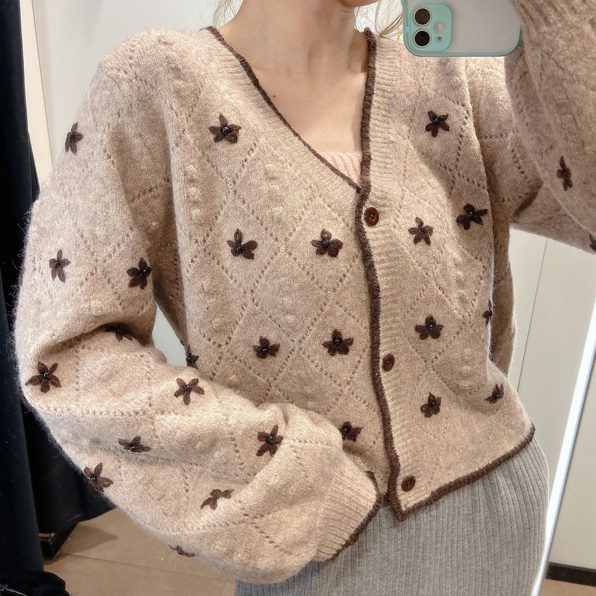 オータムウィンタースタンダード刺繍ニットカーディガンジャケット Vネックセーター レディース レトロ 秋物 冬物 アイドル ジャケット ブルゾン Tシャツ 長袖 半袖 デニム パンツ ワンピ キャミ オフショル ティアード ジーンズ スーツ ZARA フォーエバー21 GAP H&M WEGO HONEYS MUJI GU UNIQLO dholic babyGAP FOREVER21 Old Navy 春夏秋冬 韓国 K-POP Kpop 韓流 スター 27A74386537165 | 乙女家の洋品店