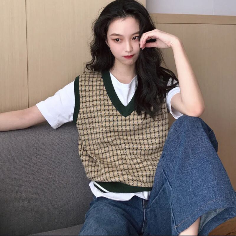 オータムスタイル格子柄Vネックノースリーブセーター ニットレディース 秋物 アイドル ジャケット ブルゾン Tシャツ 長袖 半袖 デニム パンツ ワンピ キャミ オフショル ティアード ジーンズ スーツ ZARA フォーエバー21 GAP H&M WEGO HONEYS MUJI GU UNIQLO dholic babyGAP FOREVER21 Old Navy 春夏秋冬 韓国 K-POP Kpop 韓流 スター 27A69327065572 | 乙女家の洋品店