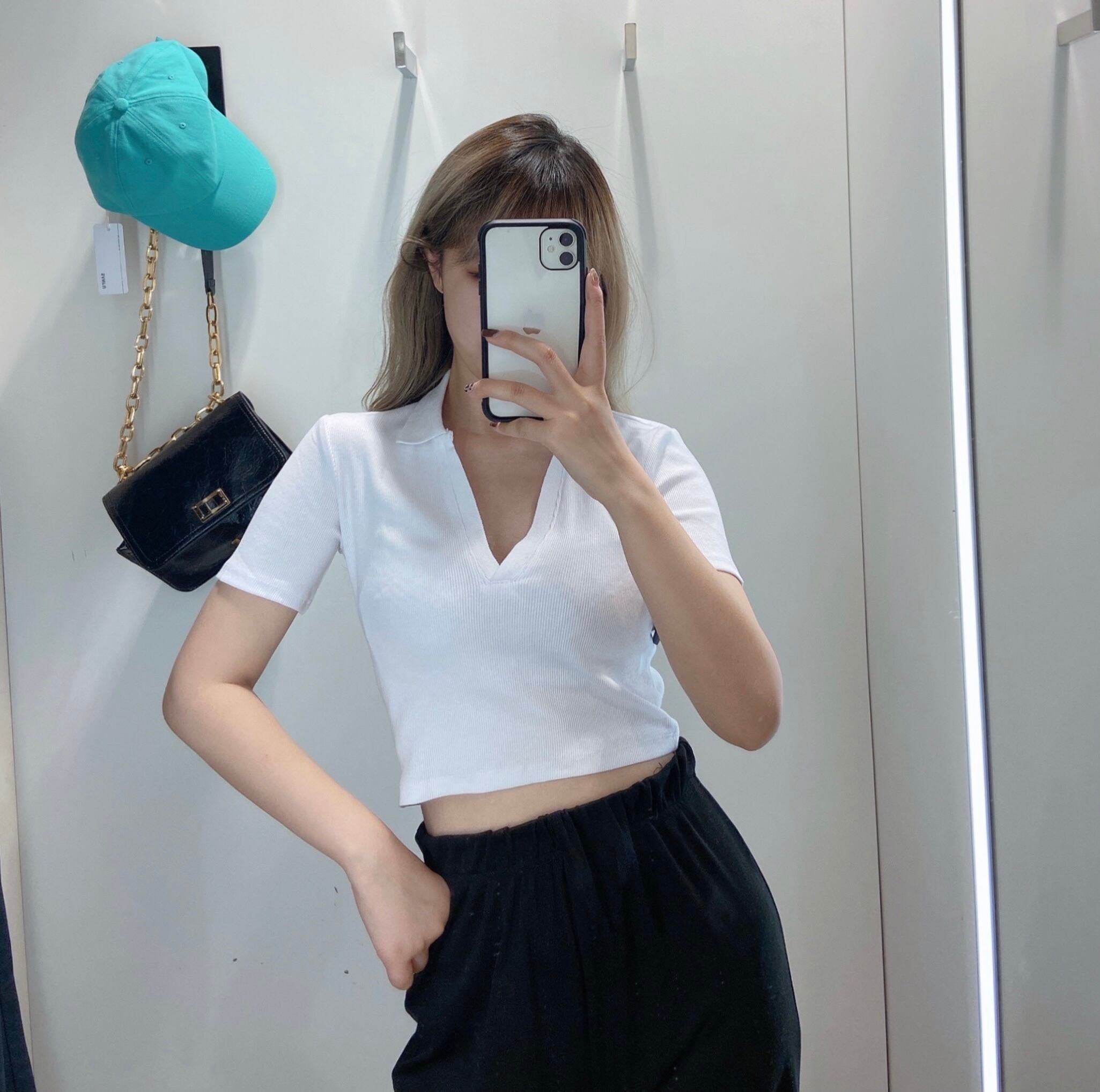ホワイトショートシャツ Vネックスリムハイウェストトップス レディース アイドル ジャケット ブルゾン Tシャツ 長袖 半袖 デニム パンツ ワンピ キャミ オフショル ティアード ジーンズ スーツ ZARA フォーエバー21 GAP H&M WEGO HONEYS MUJI GU UNIQLO dholic babyGAP FOREVER21 Old Navy 春夏秋冬 韓国 K-POP Kpop 韓流 スター 27A95825037428 | 乙女家の洋品店