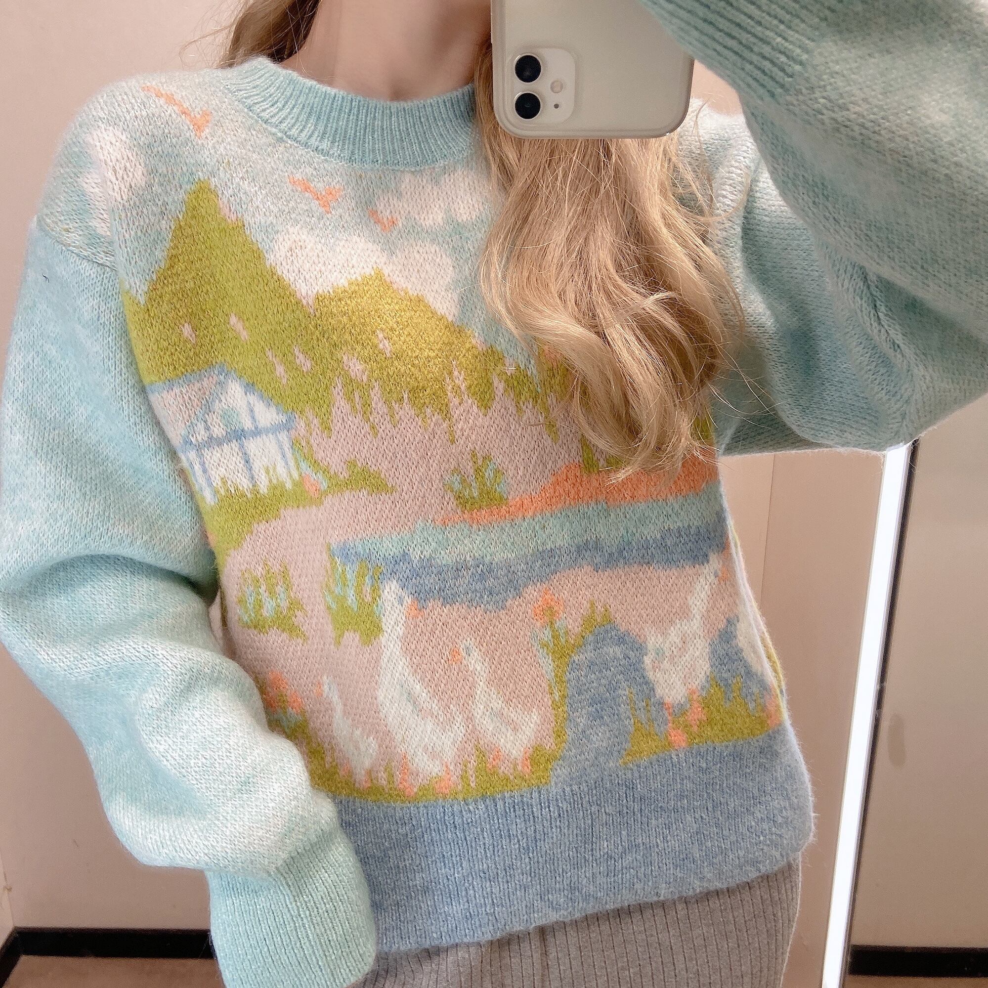 ルーズラウンドネックジャカードセーター プルオーバー レディース Oネック アイドル ジャケット ブルゾン Tシャツ 長袖 半袖 デニム パンツ ワンピ キャミ オフショル ティアード ジーンズ スーツ ZARA フォーエバー21 GAP H&M WEGO HONEYS MUJI GU UNIQLO dholic babyGAP FOREVER21 Old Navy 春夏秋冬 韓国 K-POP Kpop 韓流 スター 27A13143817620 | 乙女家の洋品店