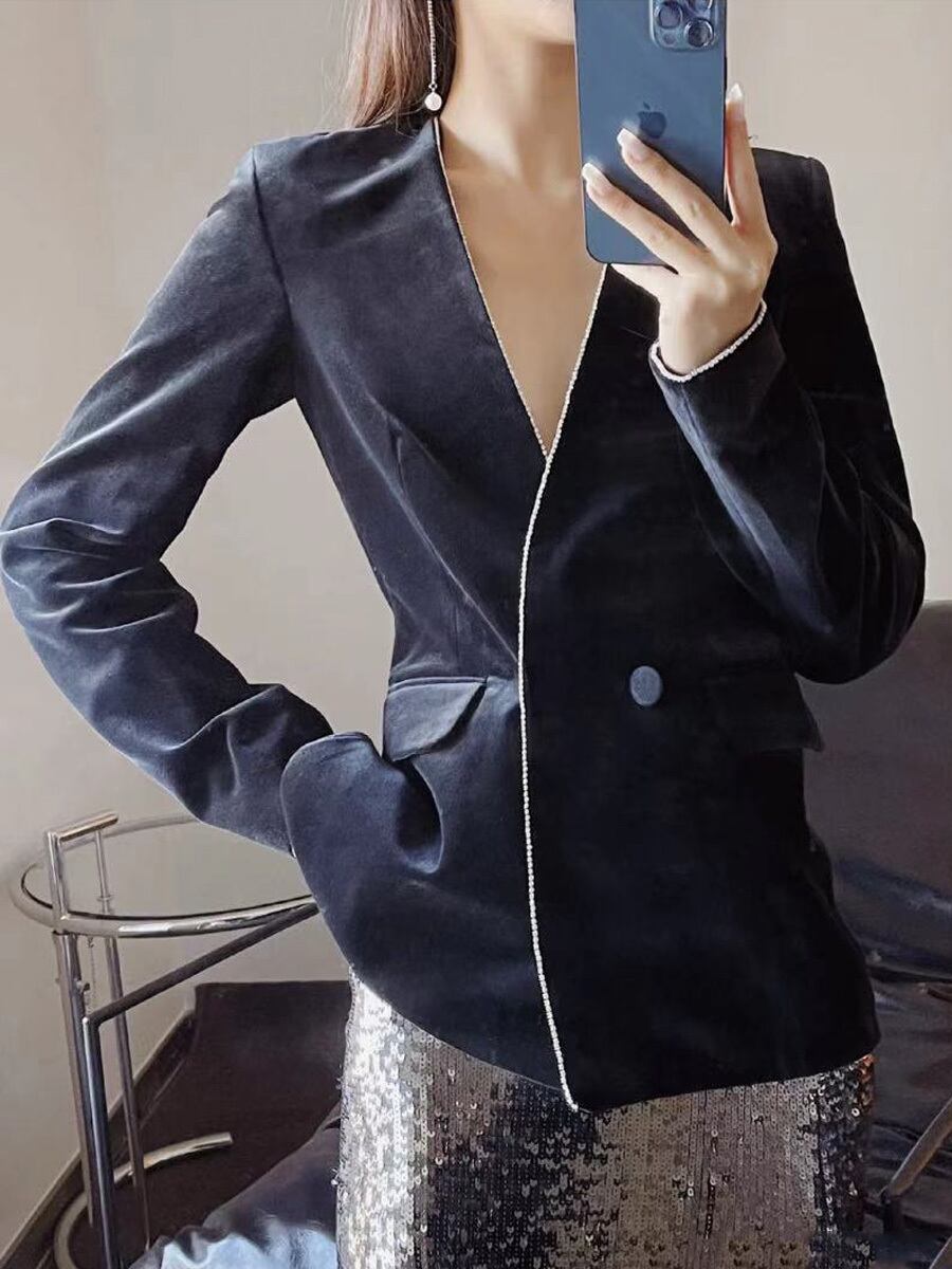 スプリングラインストーンベルベットカジュアルジャケット レディース 春物 アイドル ジャケット ブルゾン Tシャツ 長袖 半袖 デニム パンツ ワンピ キャミ オフショル ティアード ジーンズ スーツ ZARA フォーエバー21 GAP H&M WEGO HONEYS MUJI GU UNIQLO dholic babyGAP FOREVER21 Old Navy 春夏秋冬 韓国 K-POP Kpop 韓流 スター 27A14430757 | 乙女家の洋品店