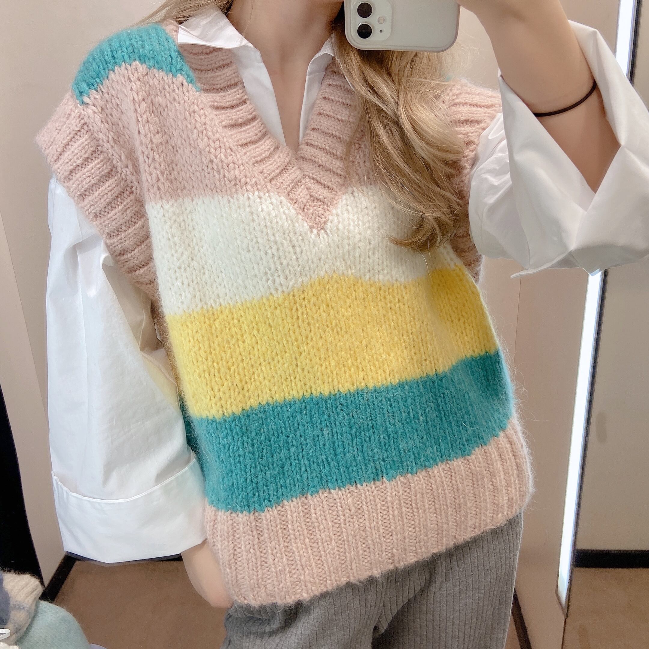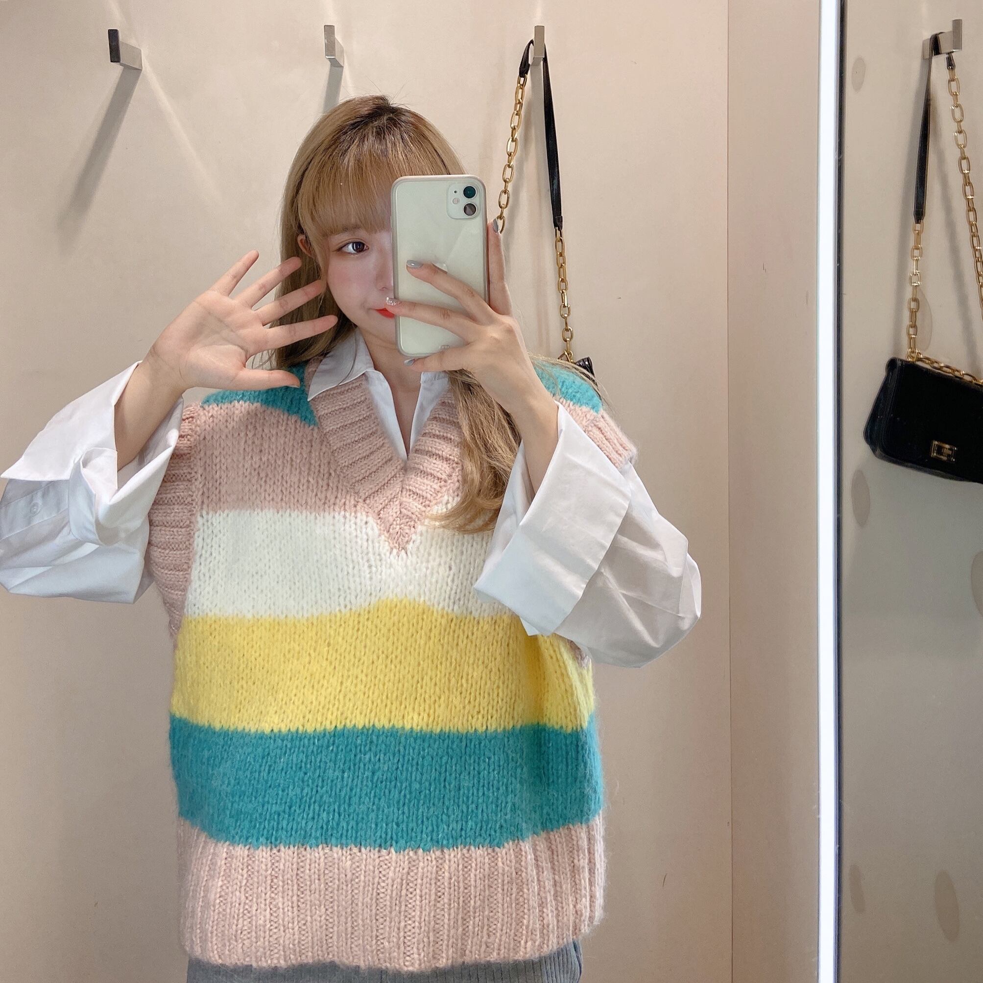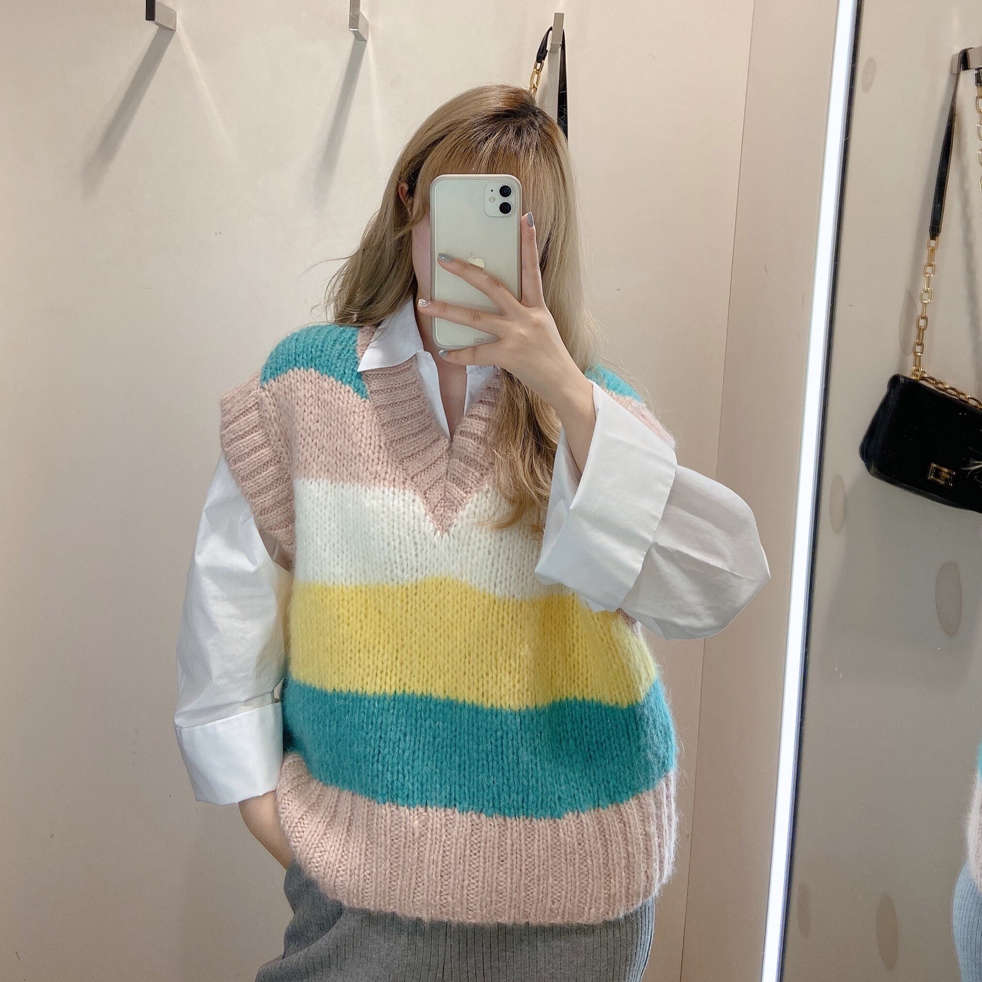 ストライプニットVネックルーズノースリーブ アイドル ジャケット ブルゾン Tシャツ 長袖 半袖 デニム パンツ ワンピ キャミ オフショル ティアード ジーンズ スーツ ZARA フォーエバー21 GAP H&M WEGO HONEYS MUJI GU UNIQLO dholic babyGAP FOREVER21 Old Navy 春夏秋冬 韓国 K-POP Kpop 韓流 スター 27A69225698642 | 乙女家の洋品店