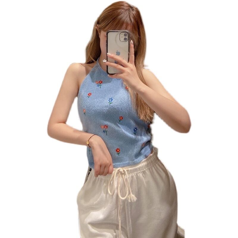Flowerデザイン 刺繍ニットカラーストラップレスホルタートップス フラワーデザイン アイドル ジャケット ブルゾン Tシャツ 長袖 半袖 デニム パンツ ワンピ キャミ オフショル ティアード ジーンズ スーツ ZARA フォーエバー21 GAP H&M WEGO HONEYS MUJI GU UNIQLO dholic babyGAP FOREVER21 Old Navy 春夏秋冬 韓国 K-POP Kpop 韓流 スター 27A94512878010 | 乙女家の洋品店