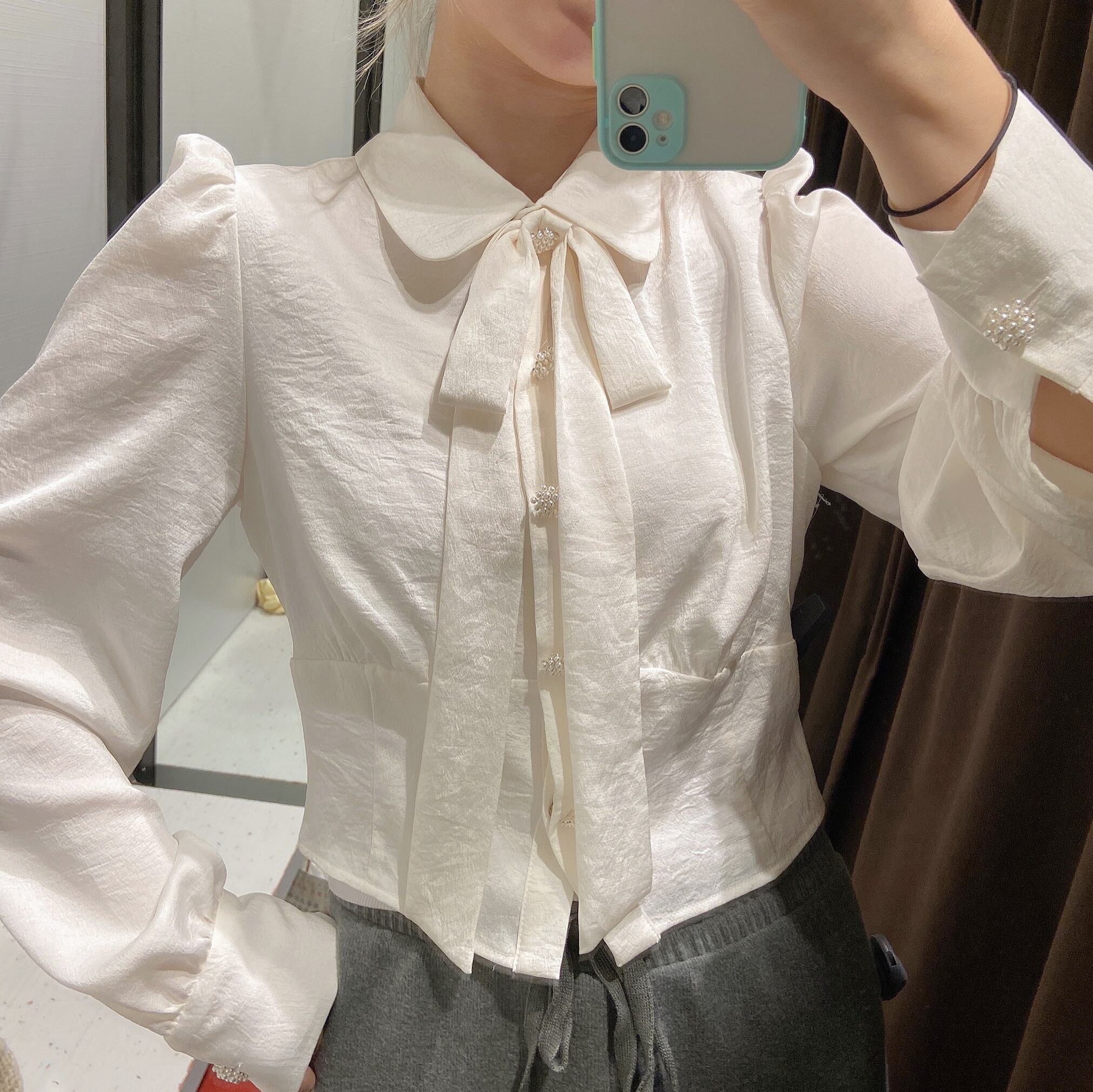 オータムシャツ スリーブショートホワイトブラウス レディース リボン 大人ガーリー スウィート キュート カジュアル 秋物 アイドル ジャケット ブルゾン Tシャツ 長袖 半袖 デニム パンツ ワンピ キャミ オフショル ティアード ジーンズ スーツ ZARA フォーエバー21 GAP H&M WEGO HONEYS MUJI GU UNIQLO dholic babyGAP FOREVER21 Old Navy 春夏秋冬 韓国 K-POP Kpop 韓流 スター 27A76061569687 | 乙女家の洋品店