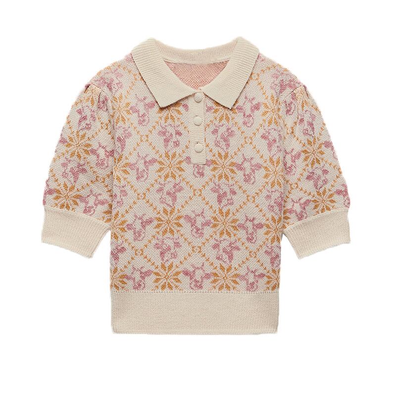カラーパターンジャカードセーター ショートスリーブプルオーバー レディース アイドル ジャケット ブルゾン Tシャツ 長袖 半袖 デニム パンツ ワンピ キャミ オフショル ティアード ジーンズ スーツ ZARA フォーエバー21 GAP H&M WEGO HONEYS MUJI GU UNIQLO dholic babyGAP FOREVER21 Old Navy 春夏秋冬 韓国 K-POP Kpop 韓流 スター 27A22080479664 | 乙女家の洋品店