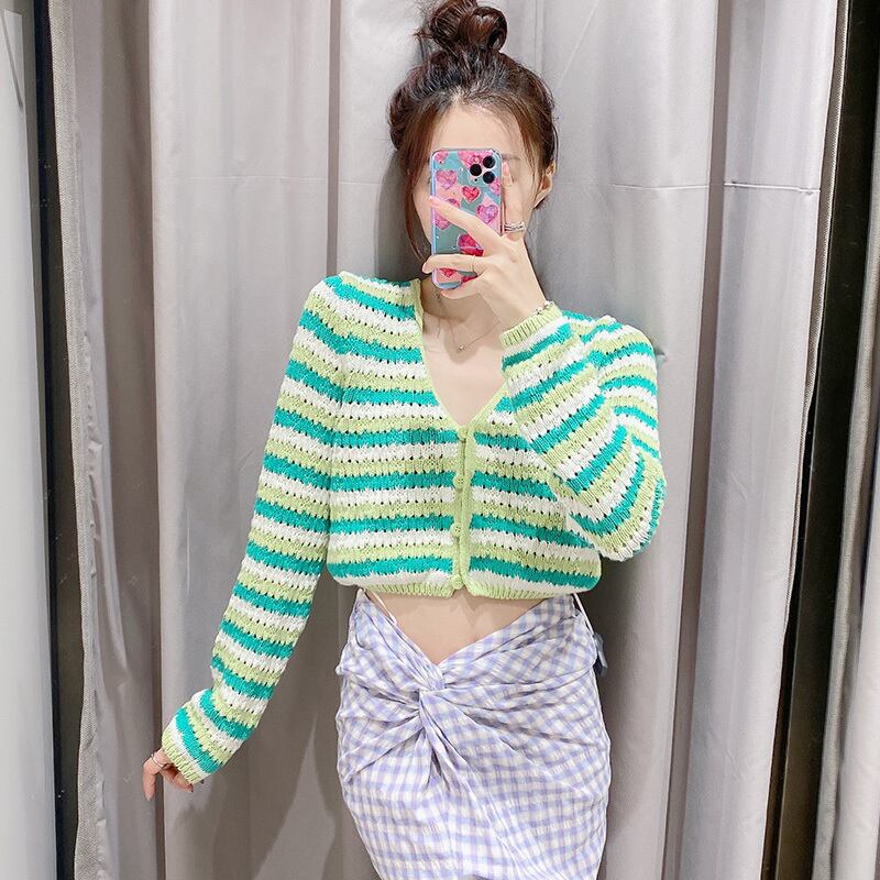 グリーンストライプVネックショートニットカーディガンジャケット ロング アイドル ジャケット ブルゾン Tシャツ 長袖 半袖 デニム パンツ ワンピ キャミ オフショル ティアード ジーンズ スーツ ZARA フォーエバー21 GAP H&M WEGO HONEYS MUJI GU UNIQLO dholic babyGAP FOREVER21 Old Navy 春夏秋冬 韓国 K-POP Kpop 韓流 スター 27A587904571 | 乙女家の洋品店