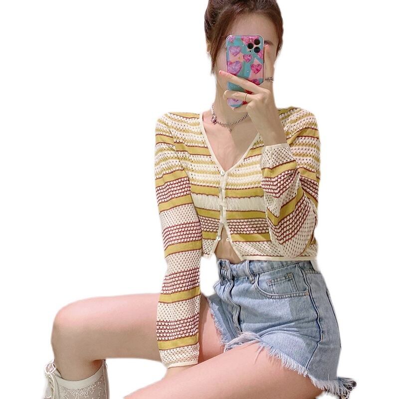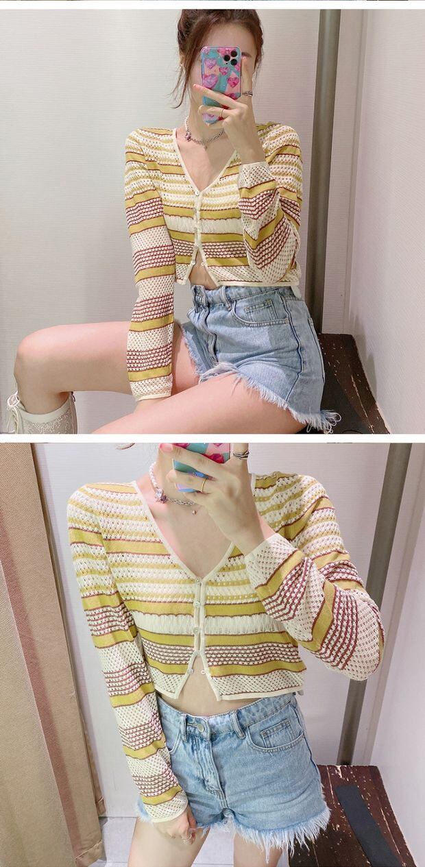 Vネックストライプウェストショートニットカーディガンジャケット アイドル ジャケット ブルゾン Tシャツ 長袖 半袖 デニム パンツ ワンピ キャミ オフショル ティアード ジーンズ スーツ ZARA フォーエバー21 GAP H&M WEGO HONEYS MUJI GU UNIQLO dholic babyGAP FOREVER21 Old Navy 春夏秋冬 韓国 K-POP Kpop 韓流 スター 27A98275578591 | 乙女家の洋品店