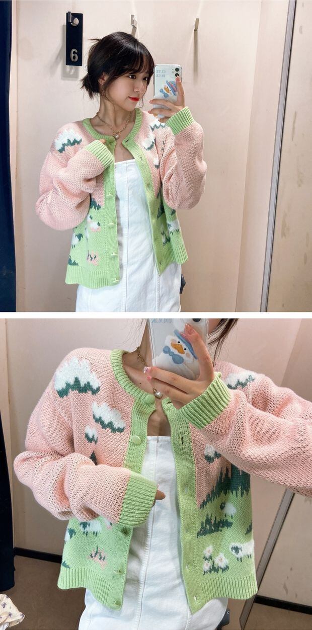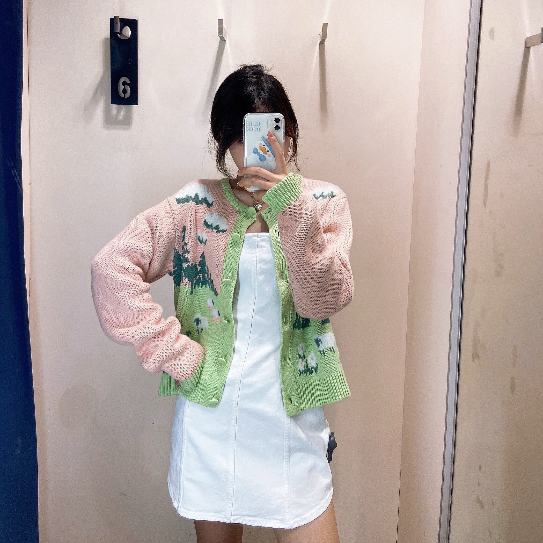 プリント柄ラウンドネックジャカードニットカーディガンショートコート レディース Oネック アイドル ジャケット ブルゾン Tシャツ 長袖 半袖 デニム パンツ ワンピ キャミ オフショル ティアード ジーンズ スーツ ZARA フォーエバー21 GAP H&M WEGO HONEYS MUJI GU UNIQLO dholic babyGAP FOREVER21 Old Navy 春夏秋冬 韓国 K-POP Kpop 韓流 スター 27A21976712735 | 乙女家の洋品店